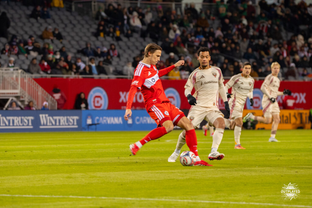 Chicago Fire FC and D.C. United played a competitive match that stayed scoreless through the first half, despite both teams creating chances. Chicago had more of the ball and looked slightly more dangerous, but D.C. held firm defensively, even having an early goal overturned after a review. The game remained balanced and tense heading into halftime.